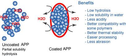 為滿足“不同的應(yīng)用不同的配方”的實際需求,所以,我們研發(fā)出不同等級的包覆型APP,使得在性能上有顯著的改善,比如熱穩(wěn)定性好,低水溶性,耐遷移等。